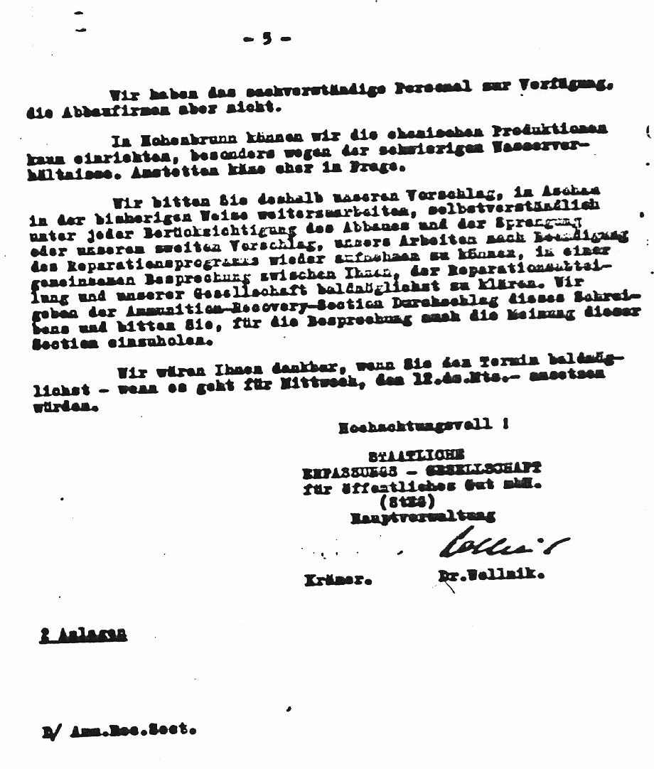 In den Nachkriegsjahren wurde in Aschau Sprengstoffe und Kampfstoffe aus der gesamten amerikanischen Besatzungszone behandelt und dokumentiert. In einem Schreiben der Gesellschaft zur Erfassung von Rüstungsgut wird dies für Aschau näher dokumentiert. Ende des Dokuments |