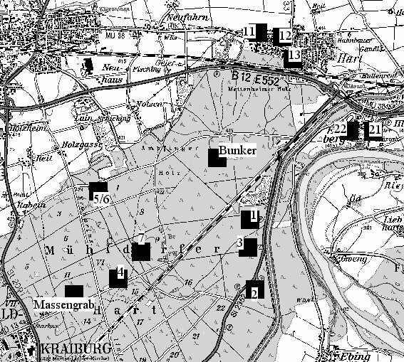 Überblick über die NS-Einrichtungen im Mühldorfer Hart |