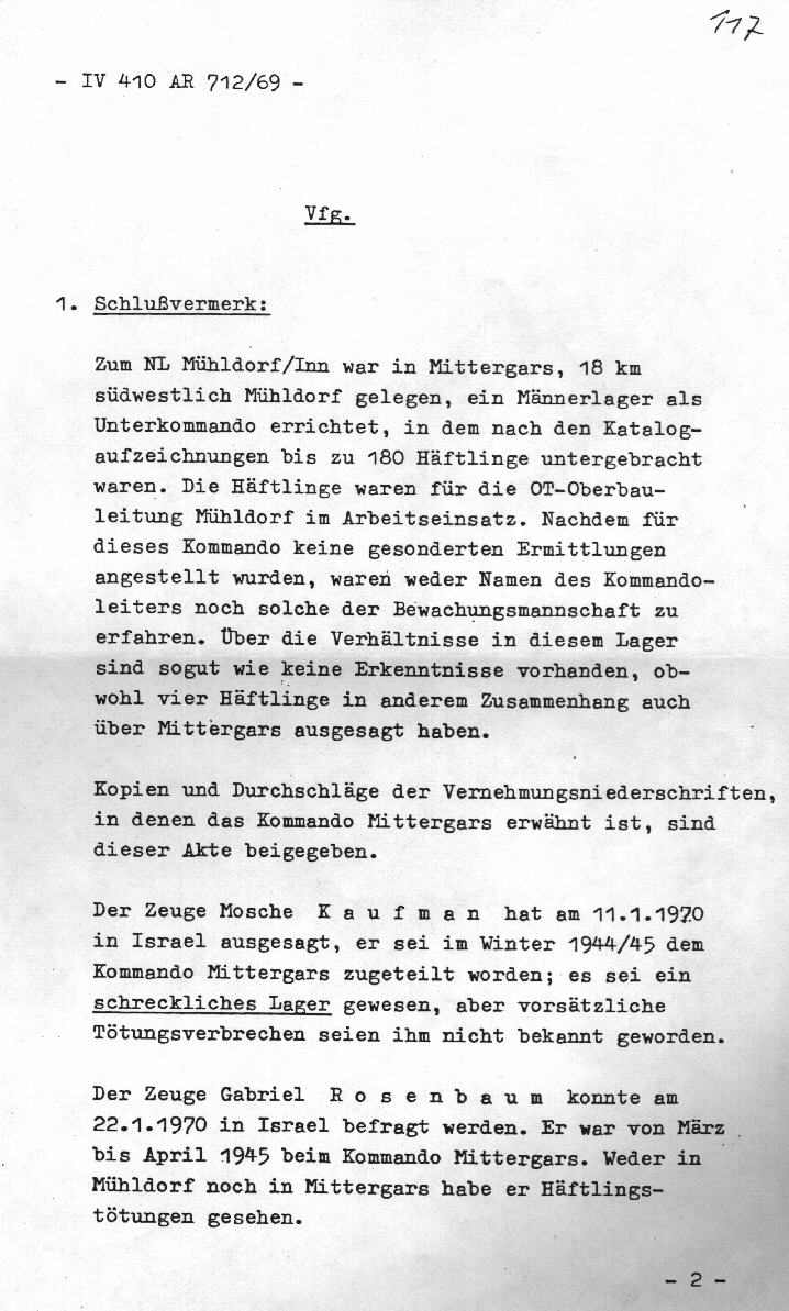 Abschlussverfügung der Staatsanwaltschaft aus dem Jahr 1969