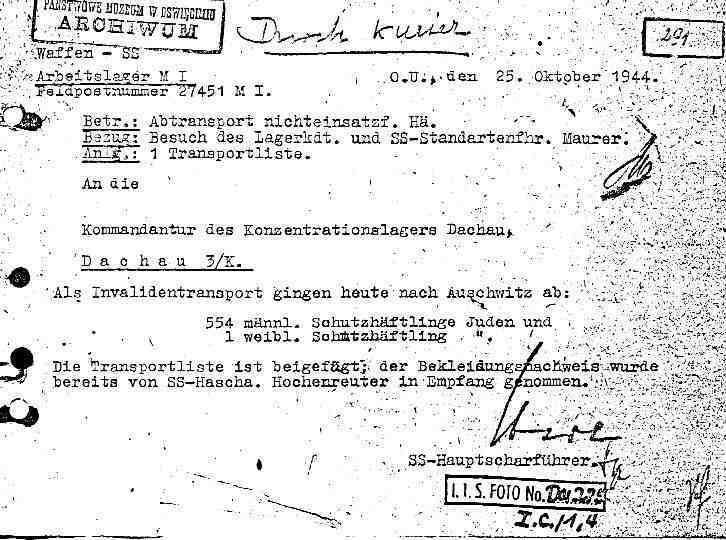 Das Überstellungsschreiben an Dachau ist erhalten.