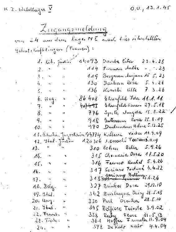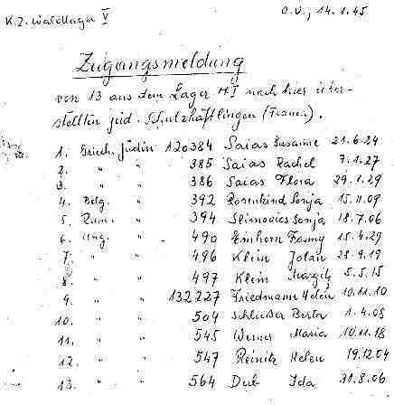 Wie aus den drei Zugangslisten ersichtlich ist, wurden diese Häftlingsfrauen allesamt aus dem Lager Mettenheim in das Waldlager überstellt. Aus diesen Listen ist auch Herkunftsland und Geburtsdatum der Häftlinge ersichtlich. |