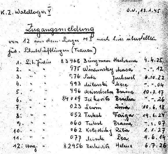 | Häftlinge des Waldlagers - Zugangslisten |